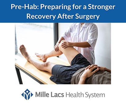 Pre-hab services are offered at Mille Lacs Health System locations in Onamia, Isle, and Milaca. For more information, contact Rehabilitation Services at Onamia (320-532-2520), Isle (320-676-3661), or Milaca (320-983-2728). By investing a short amount of time before surgery, patients can set the stage for a stronger recovery, greater independence, and the peace of mind that comes from being well prepared.